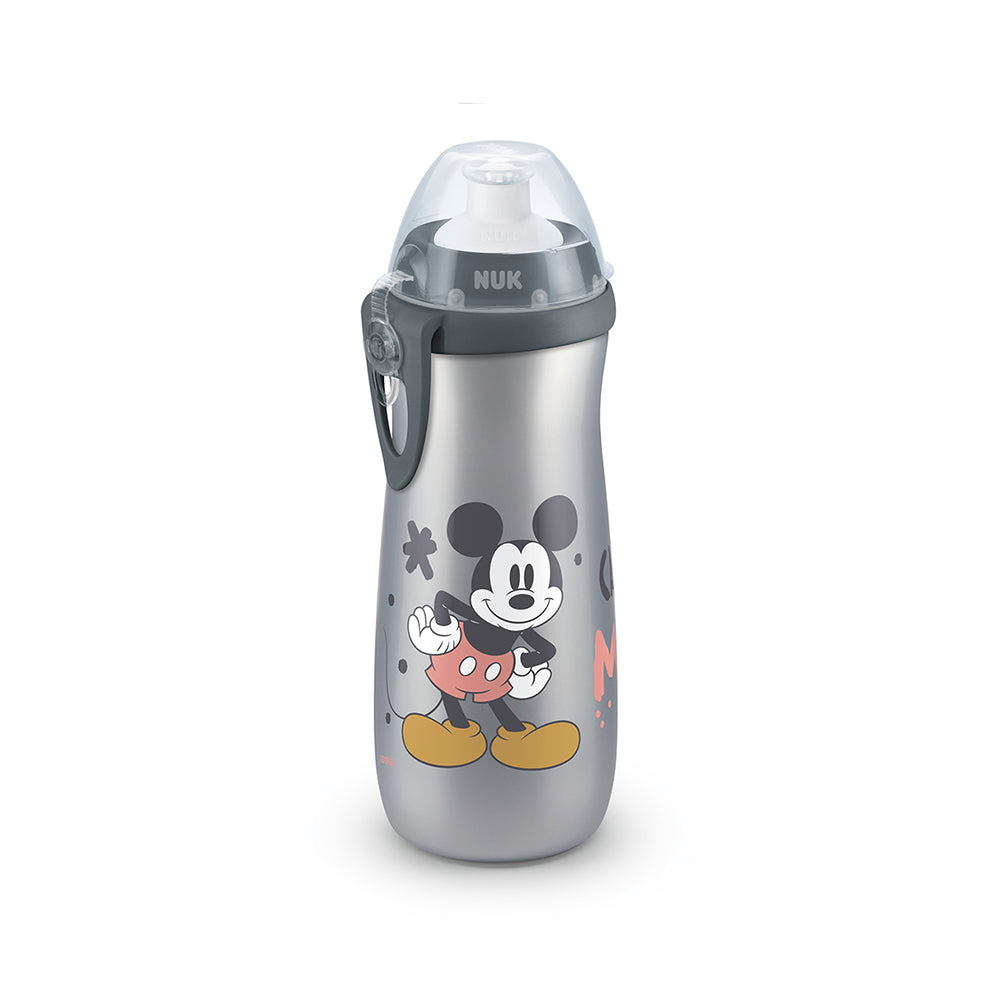 The popular Disney characters Mickey & Minnie Mouse in the NUK range.The NUK Sports Cup holds 450ml and with its cool motifs is the perfect companion for sport or play. Its practical push-pull spout makes it easy to open and close. It is made of transparent silicone and is particularly durable and hygienic, as the spout can be cleaned in the dishwasher. The cup is made of resilient, BPA-free polypropylene and can be used with all other NUK First Choice products. It complements the tried and tested NUK First Choice range and is a solution for really thirsty, active children.
