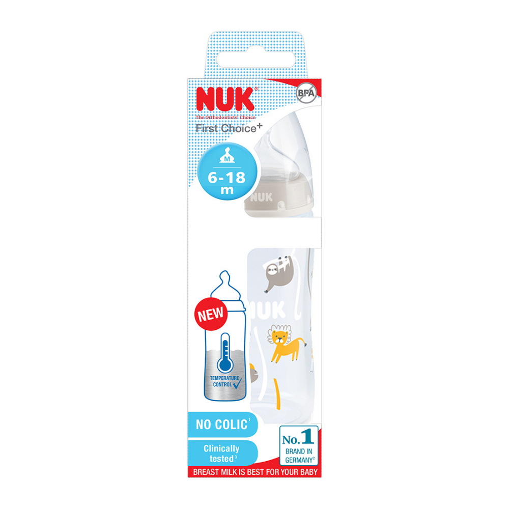 NUK First Choice Temperature Control Bottle with Silicone Teat 300ml - Safari - ShopBaby