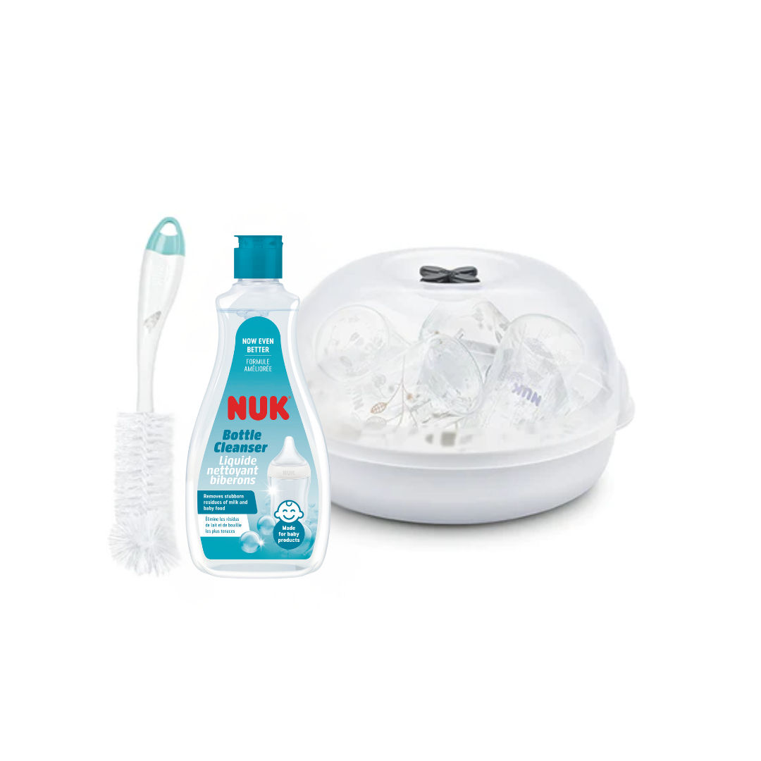 NUK Bottle Cleanser is so mild that you can not only clean baby bottles and teats, cups, plates and cutlery, but also breast pump parts, as well as washable toys and other objects that come in contact with your baby's mouth—without a second thought.