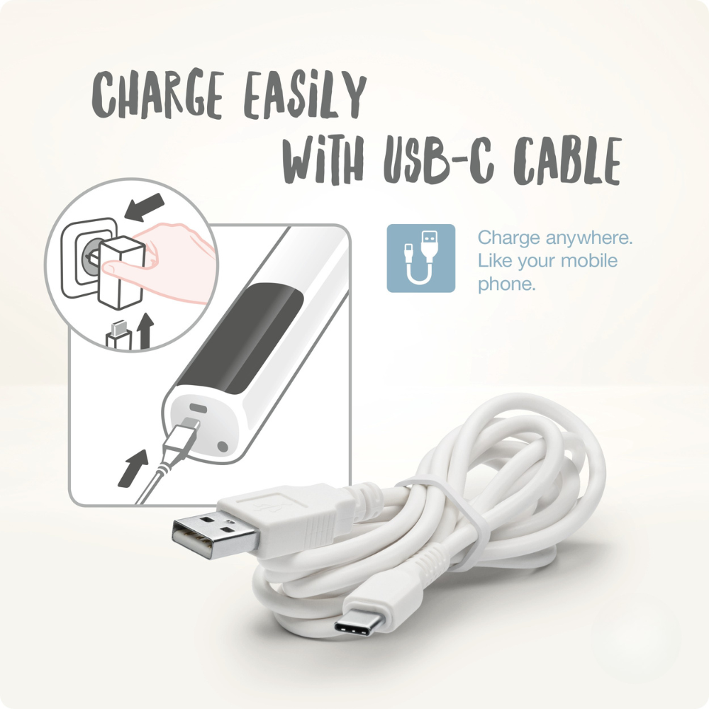 It's this easy. With the new NUK Soft & Easy, expressing milk has never been so relaxed. The pump's breast cup is 100% skin-soft silicone. There are no hard plastic parts. This makes it particularly gentle on the breast. Whether you express at home or out and about, you can decide. Because, thanks to the integrated battery, you can take the super-light breast pump with you wherever you go. And it's also really easy to use: just two taps on the touch control, and off you go.