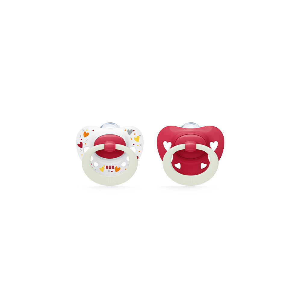 NUK Glow in The Dark Signature Night Silicone Soother 2 Pack - Red/Hearts