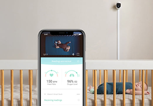 The Monitor Duo seamlessly pairs Smart Sock 3 with Cam 2 for a complete picture of Baby's well-being with the ability to track heart rate, oxygen level, and sleep trends while streaming HD video all in one place.