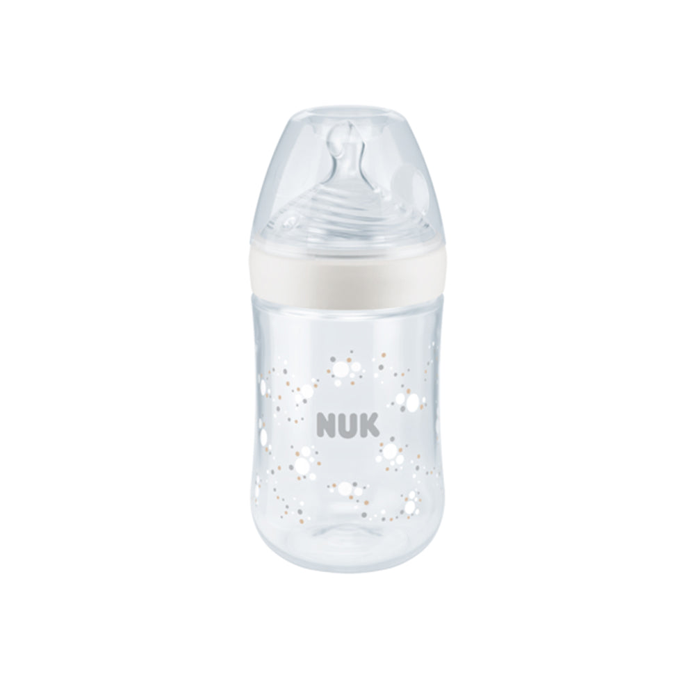 NUK Temperature Control Nature Sense Bottle with Silicone Teat 260ml Medium Hole - Bubbles - Shopbaby