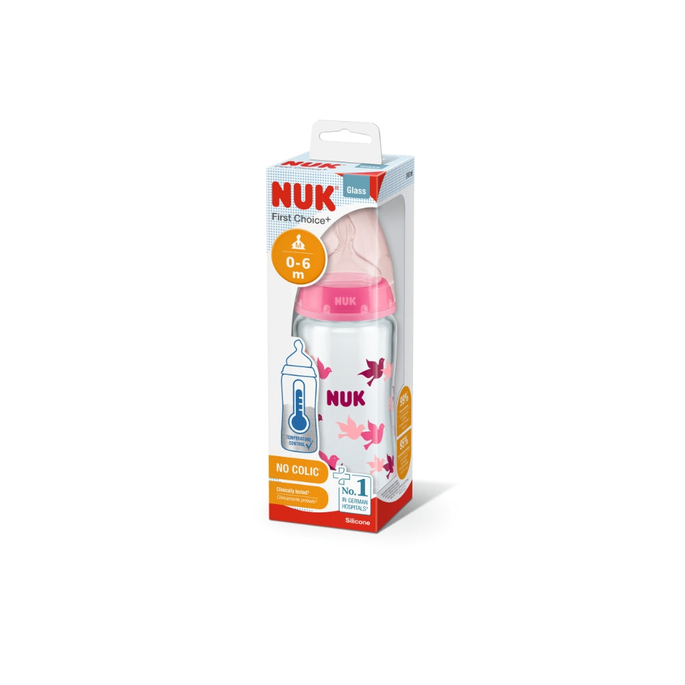 NUK FC + 240ml Glass Bottle Silicone Teat - Birds