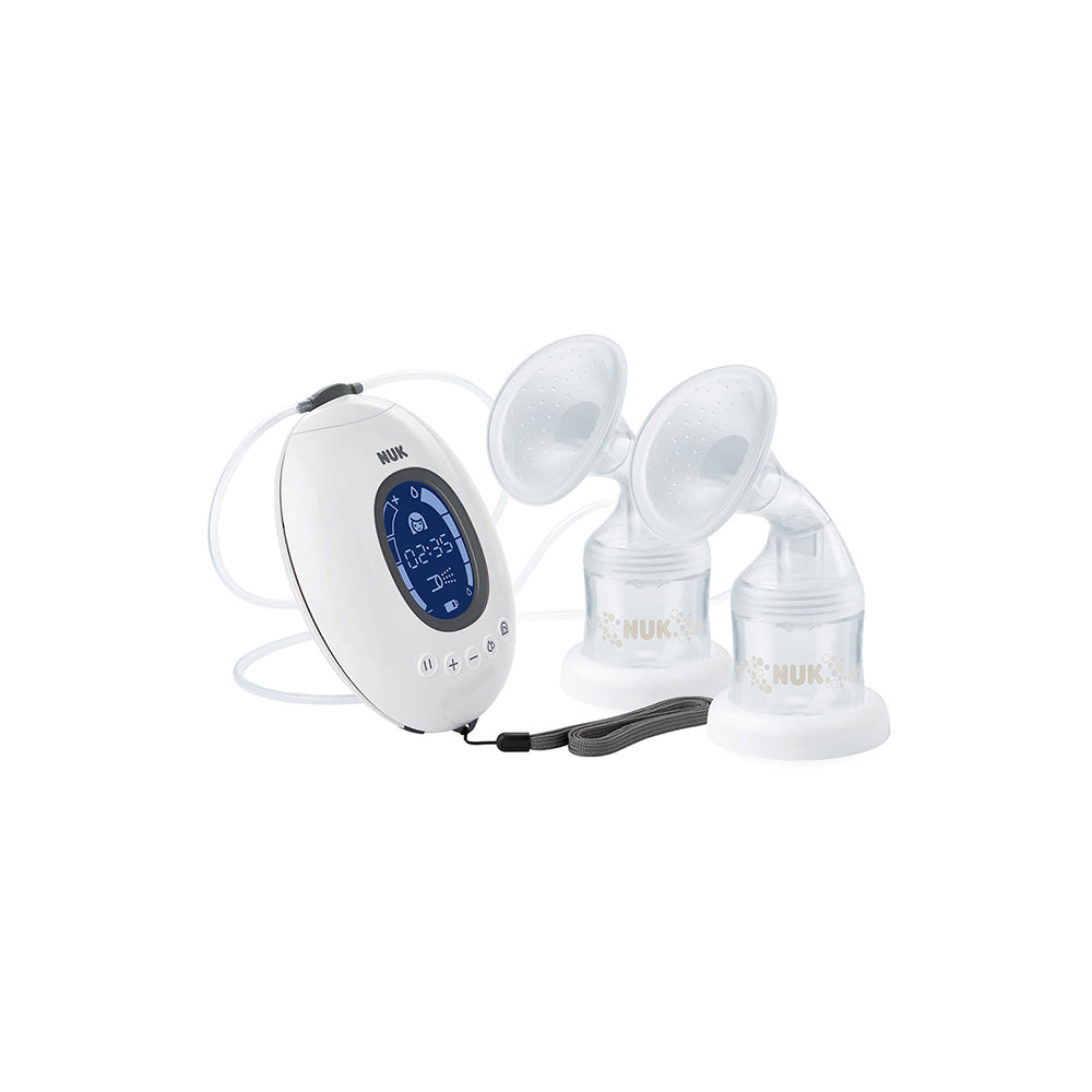 In the first months of life, babies do not really need much more than breast milk and a whole lot of love. But there are mothers who cannot or do not always want to breastfeed but would still like to give their baby precious breast milk. Specially for mothers, who would like to be particularly time-saving when they express, we have developed the NUK Nature Sense double electric breast pump. With its two breast shields, it enables the efficient expressing of not only one breast but also both breasts at the same time, reducing the time required by half.Â